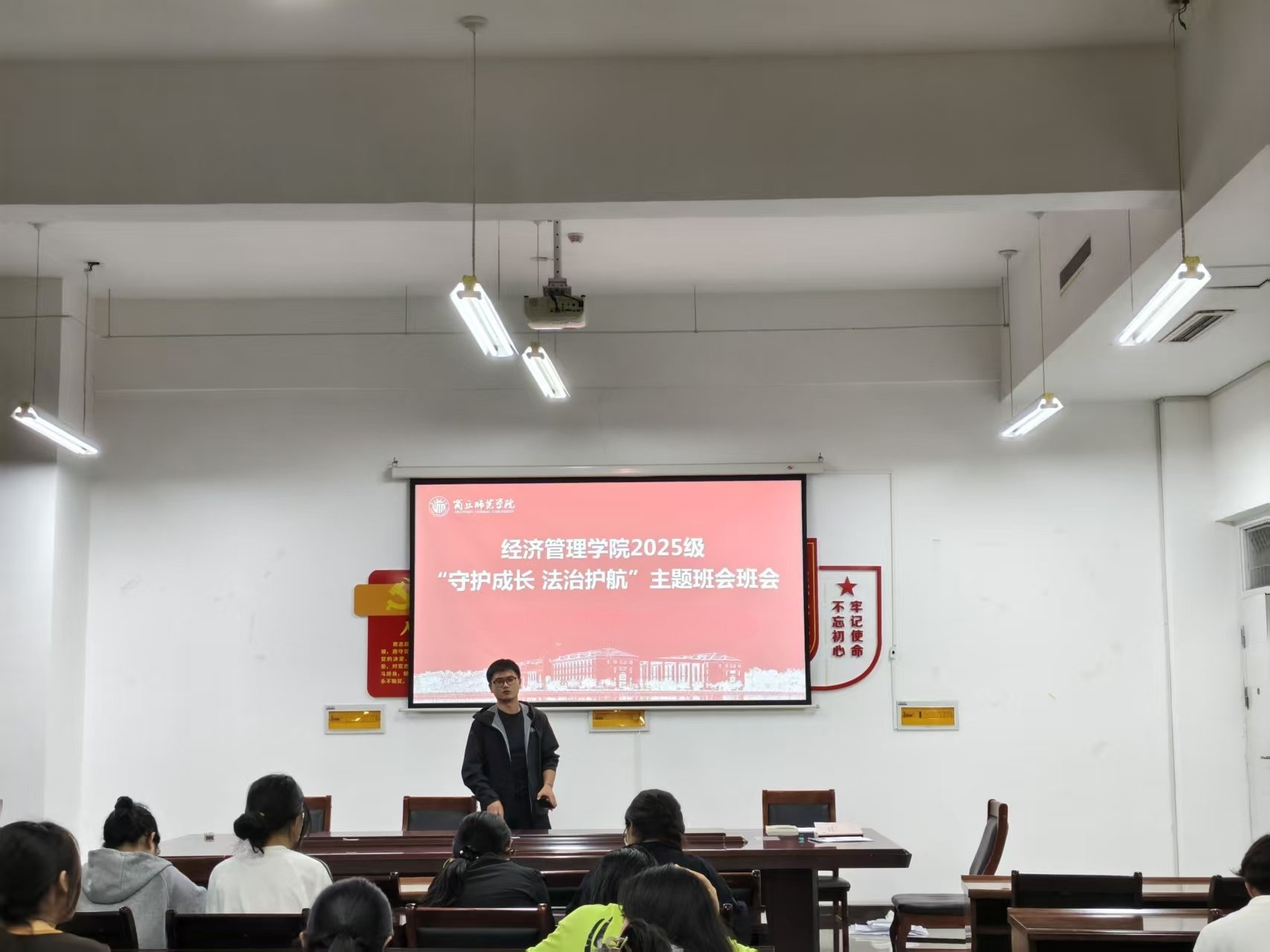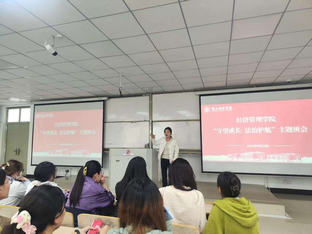 为深入贯彻落实习近平法治思想,切实增强学生法治观念,营造安全、有序、文明的校园环境,2025年9月22日至28日,经济管理学院面向全院各年级学生开展“守望成长、法治护航”主题班会活动。活动由各年级辅导员主讲,通过案例剖析、互动讨论、情景模拟等形式,引导学生树立法治意识,提升自我保护能力,为青春成长筑牢法治防线。