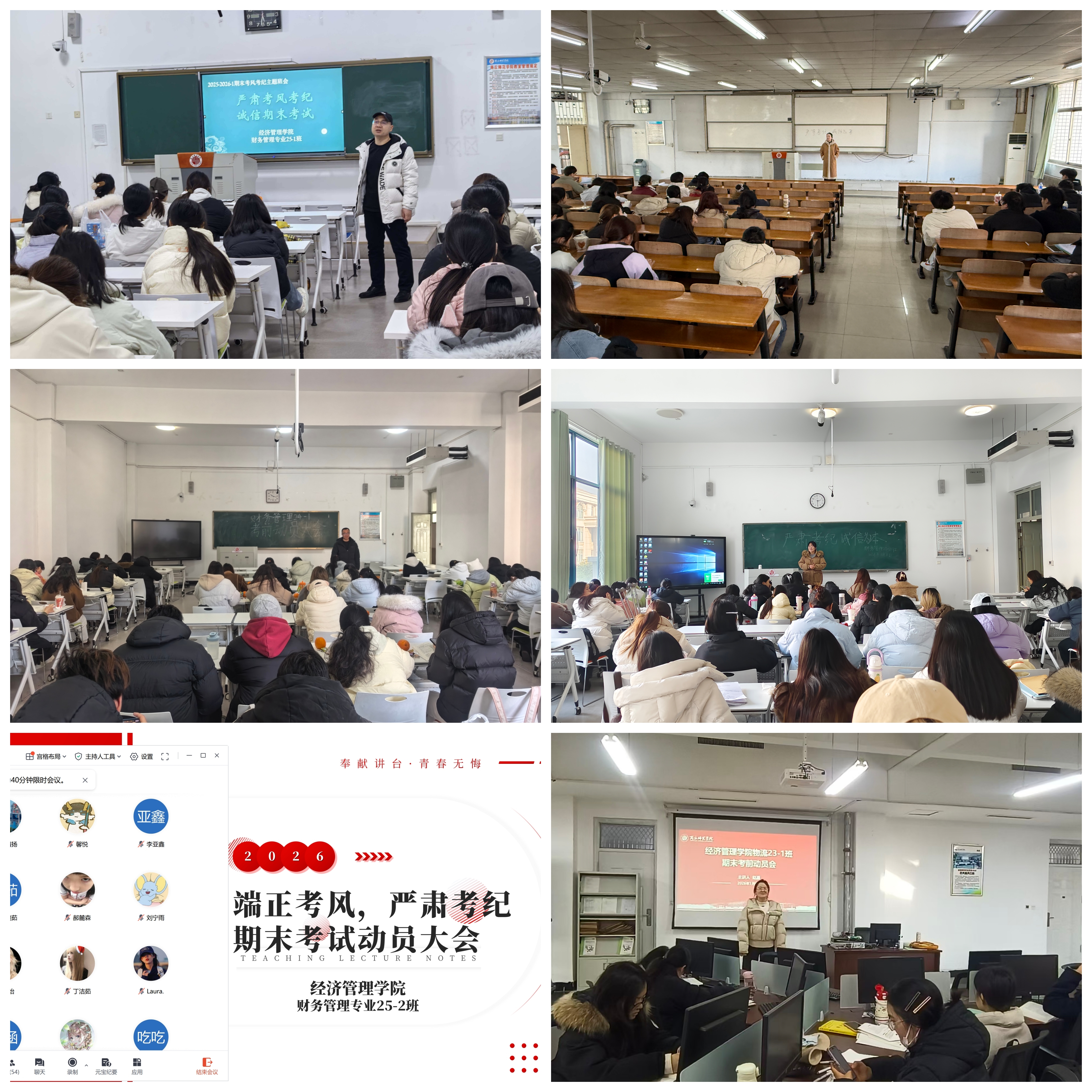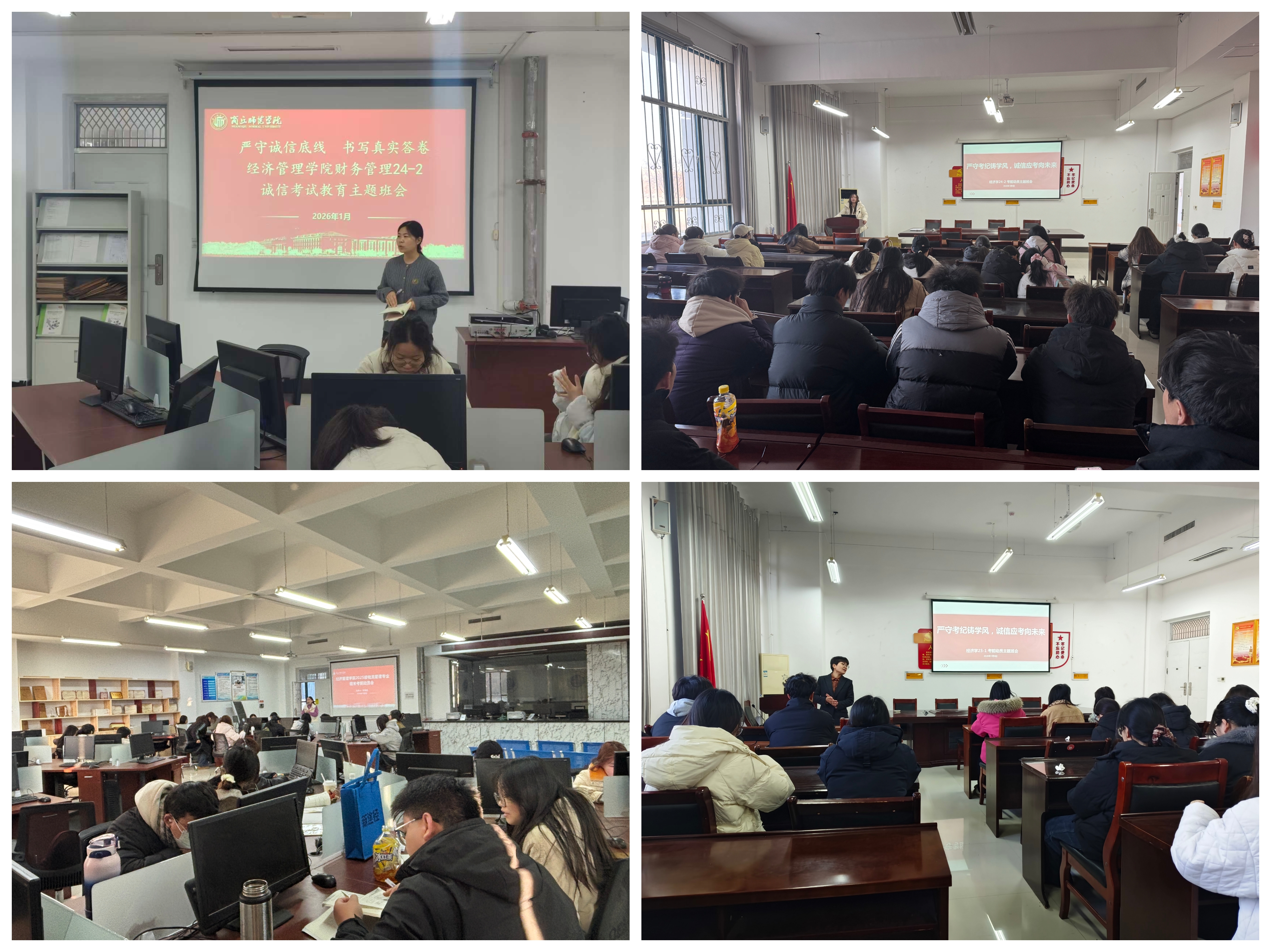 为端正考风,严肃考纪,营造公平、公正、诚信的考试环境,1月7日至9日,经济管理学院各班级辅导员、班主任组织召开了“考前诚信教育”主题班会。